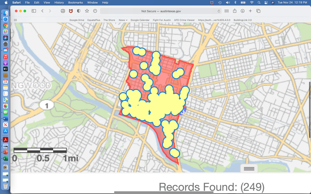 The Austin Police Department has an application on-line called CrimeViewer where you can review crimes reported in Austin. You can review at the city level, by Council District, by APD district, by zip code and by several other filters. Crimes are segregated into two FBI reporting categories, Part 1 Crimes and Part 2 Crimes. Part 1 Crimes include homicide, aggravated assault, robbery, arson, burglary, auto theft and theft. These are categories that the FBI collects detailed information on and reports at the national level. Part 2 Crimes are everything else, mostly misdemeanor crimes or non-violent crimes which are reported by top-line numbers only.